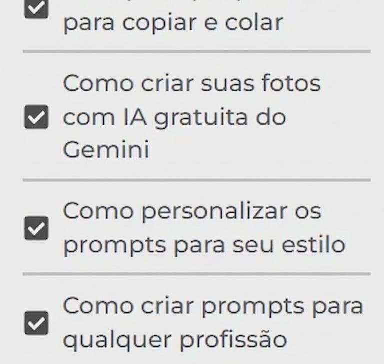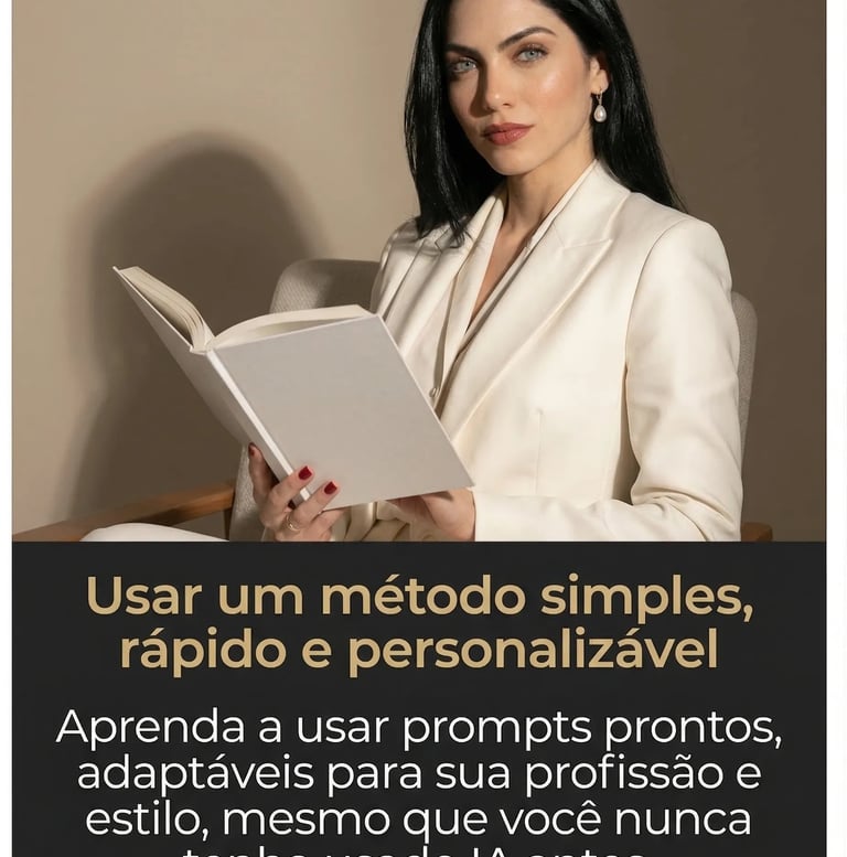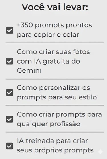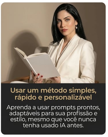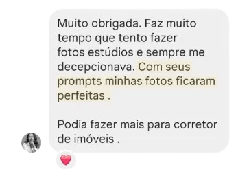 Consigo adaptar os prompts para minha área? Com certeza. Os 300 prompts prontos já contemplam vários estilos, e você ainda vai aprender a criar os seus próprios prompts personalizados para qualquer tema ou profissão.
