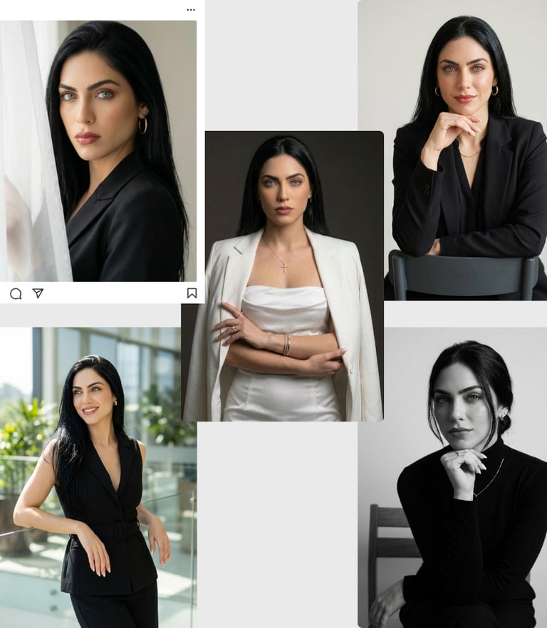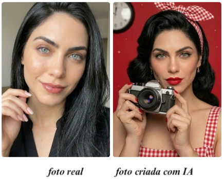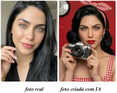As fotos são 100% suas! A IA funciona como uma assistente de edição avançada, utilizando sua base real para criar novos cenários, poses e estilos, mantendo sempre a sua identidade.