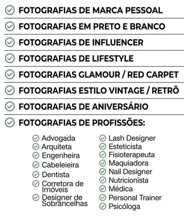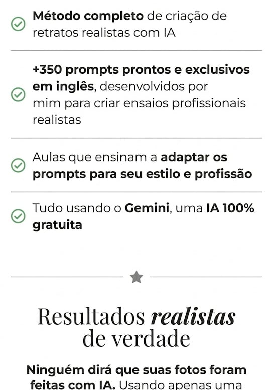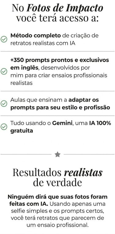 Sim! Os prompts são otimizados para gerar retratos com aparência profissional, que transmitem naturalidade, leveza e sua essência.